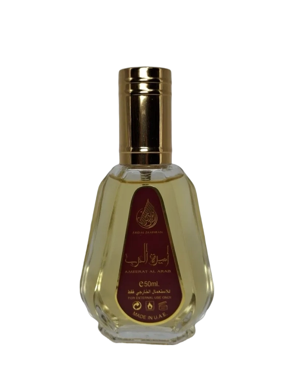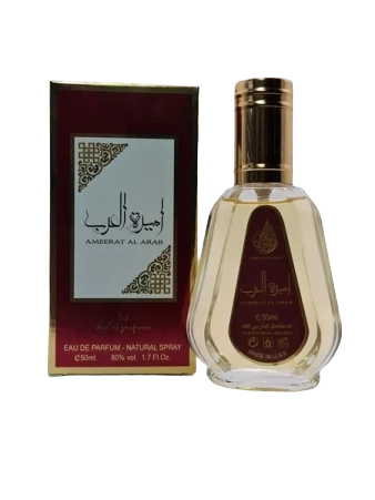Ameerat Al Arab Eau de Parfum 50 ml es una fragancia diseñada para mujeres que buscan sofisticación y elegancia con el sello de la perfumería árabe.Notas de salida: se abre con un toque cítrico y refrescante de naranja y bergamota, aportando energía y luminosidad.