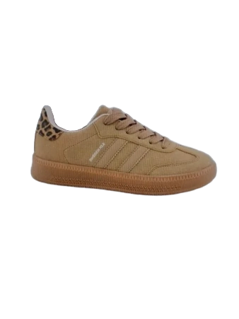 Zapatilla urbana para mujer. Cierre de cordones.Plantilla acolchada ,Suela de goma ligera y flexible. Una deportiva ligera y ideal para pasear cómoda. fabricado en en serraje sintetico con detalle leopardo en el talon. Plantilla moldeada exrtraible.Suela caucho color caramelo con buena adherencia🏃♀️✨.